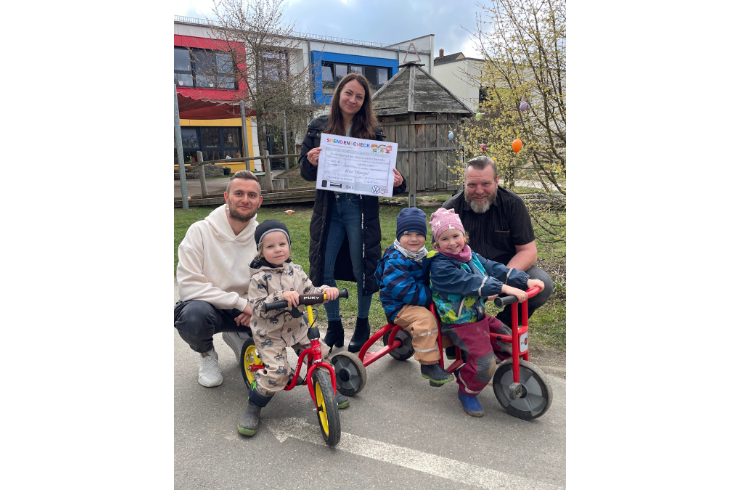 Dank der tollen Unterstützung der Mitarbeitenden des VW-Motorenwerks Chemnitz dürfen sich die Kinder der Kindertagesstätte Triangel bald über Zuwachs in ihrem „Fuhrpark“ freuen.